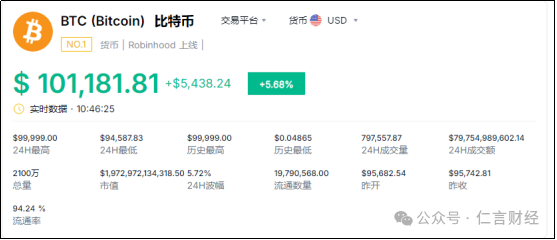 今天,比特币(BTC)打破了10万好意思元每枚,日内涨幅卓绝5%。万恶的好意思帝国宗旨啊,这涨的太豪无东说念主性了。